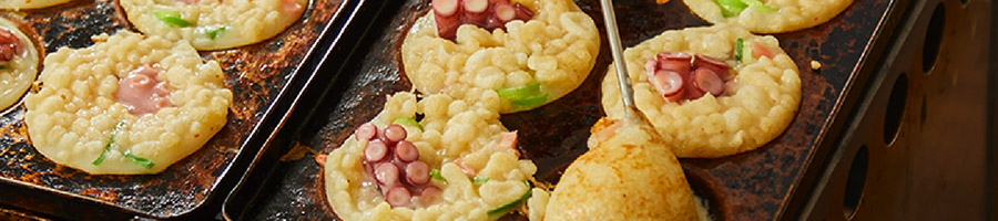 また、たこ焼きの生地をベースにして改良を加えた「明石焼き」もラインナップ。
